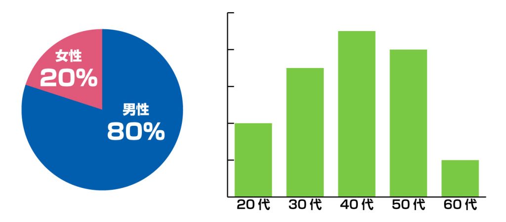 ▲バーンリペア 大阪サービス拠点の男女比・年齢層