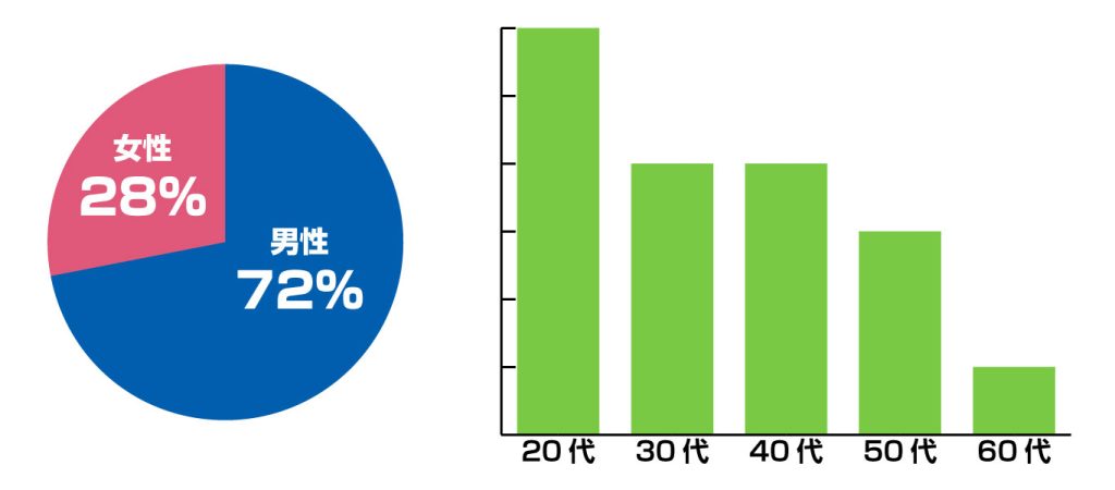 ▲バーンリペア 京都サービス拠点の男女比・年齢層